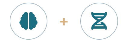 The brain represents judgment and care. The DNA helix symbolizes scientific discovery and research. Together, they reflect the integration of science and practice in advancing psychiatry.